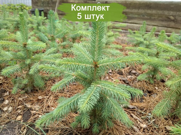 Приобретите комплект из 5 саженцев Ели Голубой Глаука, каждый из которых достигает высоты до 20 см. Эта разновидность ели известна своими красивыми голубыми иголками и плотной формой кроны, что делает её популярным выбором для ландшафтного дизайна и украшения садов.