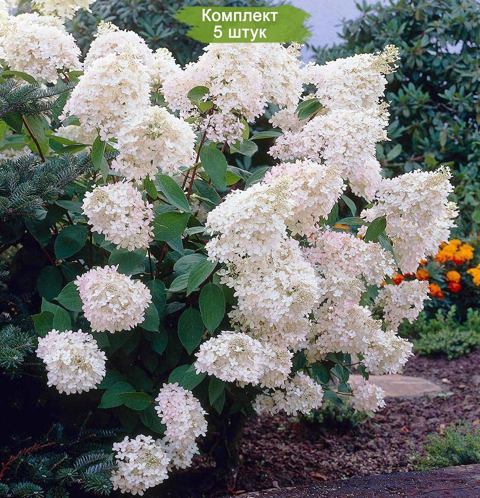 В комплекте 5 саженцев, готовых к посадке. Превратите ваш сад в цветущий оазис с гортензией метельчатой Грандифлора!