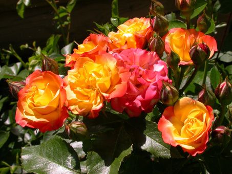 Откройте для себя изысканную красоту чайно-гибридной розы Самба Пати (Samba Party) – настоящего украшения вашего сада. Этот сорт розы привлекает внимание своими яркими, насыщенными цветами, которые переливаются оттенками от золотисто-желтого до насыщенного красного. Великолепные бутоны, распускаясь, создают эффект настоящего цветочного фейерверка, который будет радовать вас на протяжении всего сезона цветения.